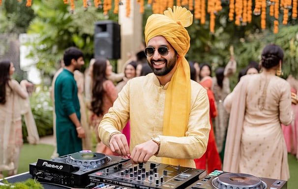 From amusing dhol mixes to upbeat Bollywood, we bring the music thst keep the haldi lively, colorful, and full of smiles.